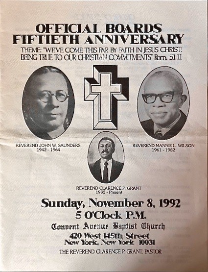 In 1955, after Dr. Saunders suffered a debilitating stroke, Rev. Mannie L. Wilson served as interim pastor for five years. After a faithful struggle, Rev. Saunders died in February 1961 at 92 years old. Three months later the church called Rev. Wilson as the second pastor of the Convent Avenue Baptist Church.